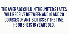There’s no doubt that antibiotics are a good thing. They save lives every day. We can, in part, attribute our longer lifespans, reduction in infant mortality and childhood deaths from life-threatening infections, and the near elimination of childbirth-related maternal deaths from infections in hospitals to antibiotics. As a medical doctor I am grateful to be able to prescribe them for serious bacterial and other appropriate infections, for example Lyme disease.As with many things, however, more is not always better. And this is certainly the case with antibiotics.The average child in the United States will receive between and 10 and 20 courses of antibiotics by the time he or she is 18 years old. We are so accustomed to antibiotics being prescribed for childhood illnesses that we assume that they are as antibiotic coursessafe as they are common. But this is far from the truth. We are now learning the hard way that the common overuse of antibiotics, both as medicines and in our foods (they are given to cattle and poultry to keep them “healthy” until they are slaughtered for food; antibiotics also promote growth in these animals by the same mechanisms that their chronic use increases the risk of obesity in humans) is responsible for two major health problems: global antibiotic resistance to serious infections, and damage to the human microbiome.This growing awareness that antibiotic overuse is dangerous for both public and personal health requires us to drastically and immediately rethink and adjust our antibiotic use. In doing so we can prevent our children from developing life-long chronic illnesses associated with microbiome damage, some of which rival the seriousness of the bacterial infections that used to threaten them, and we can reduce the major global threat of antibiotic resistance we all face.